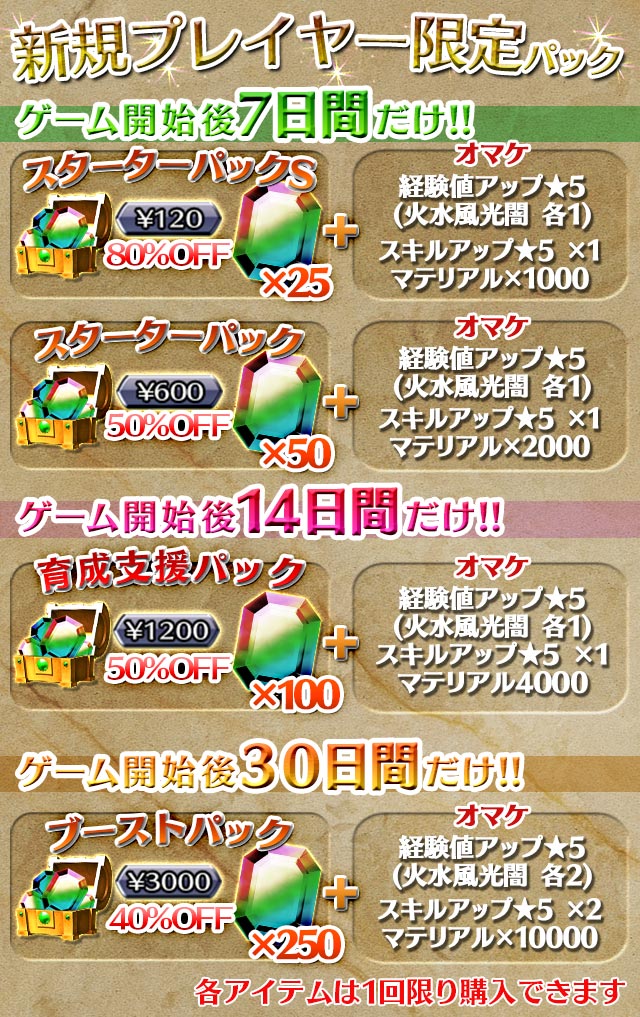 新規プレイヤー限定セール!