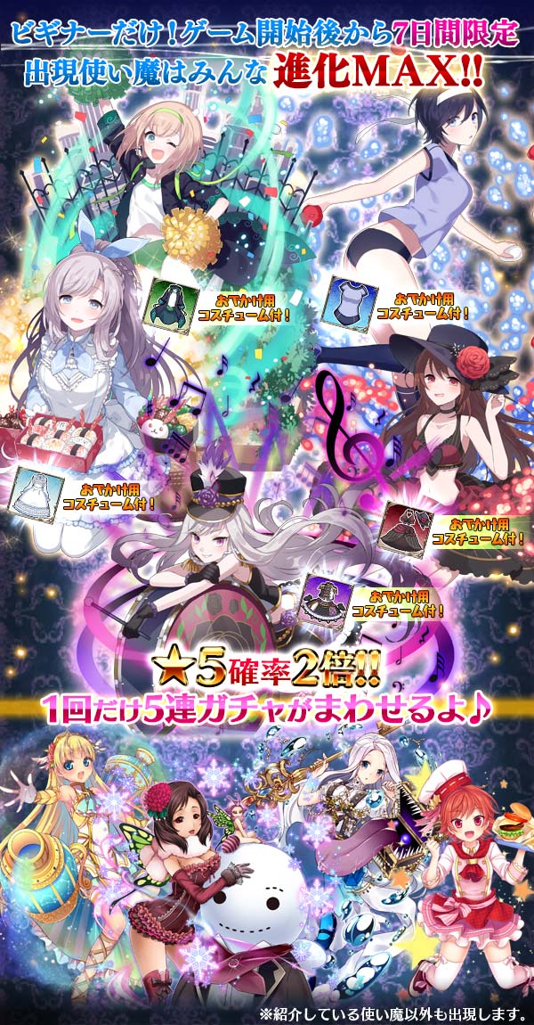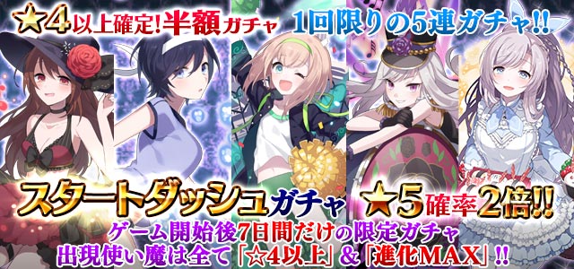 ※スタートダッシュガチャは、★5の出現確率が通常提供している「魔法乙女のガチャ」のレアリティ別確率の2倍(2.0%)となります。