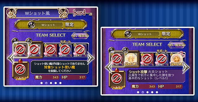 ※サポート使い魔はショットが一致していなくても出撃できますが、スキルが使用できません。また、属性一致ボーナスも適用されません。