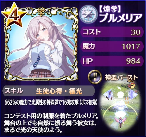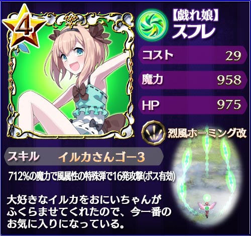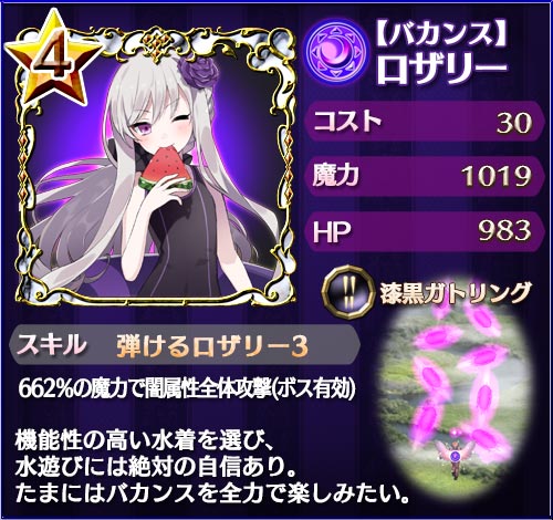 ※「【バカンス】ロザリー」「【炎疾走】ラナン」「【手料理】カトレア」「【戯れ娘】スフレ」「【煌学】プルメリア」はすでにリリースされている使い魔です。