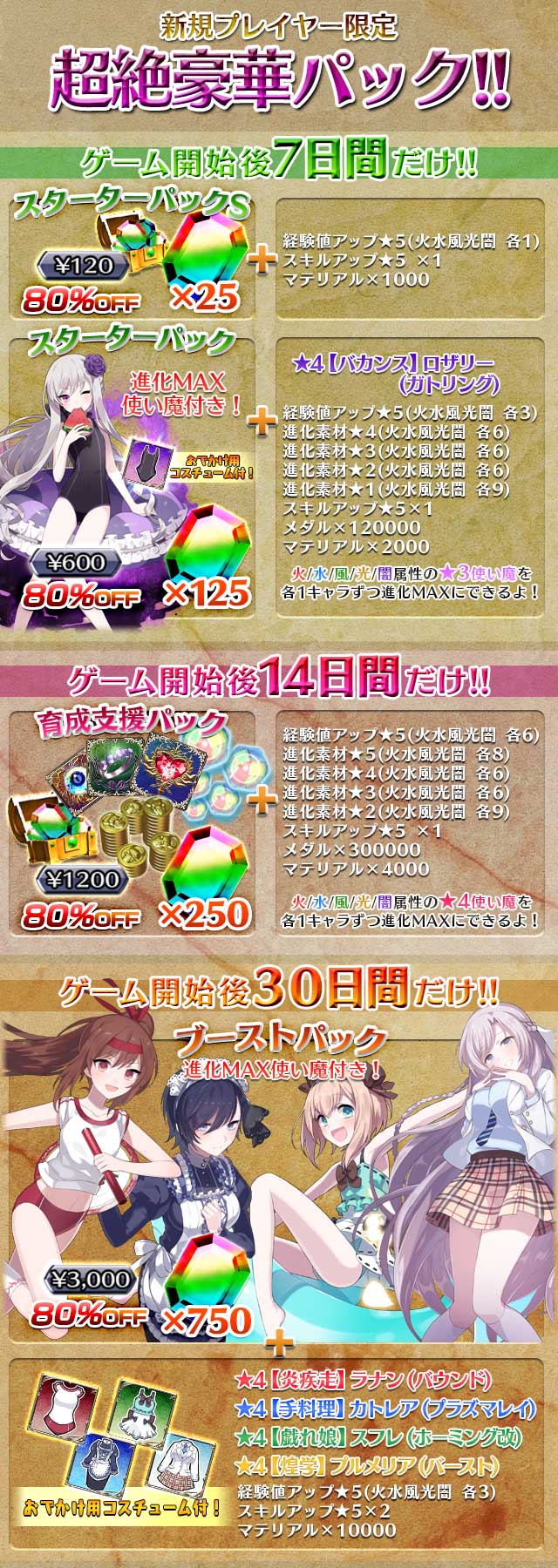 開始間もないプレイヤーを強力にサポートする豪華パック!!・経験値アップ★5