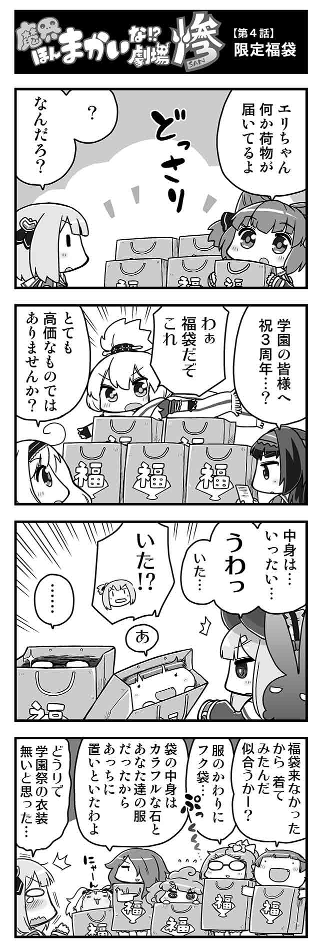 詳細 【4コマ】魔界ほんまかいな?劇場惨 3周年と惨劇の福袋?編★第4回更新 2018年04月18日 3周年記念!ドタバタ4コマ劇場 第4回公開!! 毎週水曜日12時更新 ★全10回★ 次回は4月25日更新予定! 来週もお楽しみに♪ ▼魔界ほんまかいな!?劇場惨まとめ▼ ▼これまでのお話はこちら▼