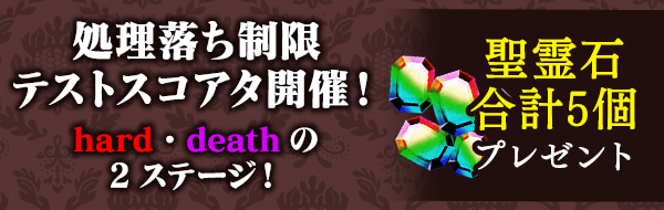 本スコアタは『Ver.3.7.0のアップデートのお知らせ』にてお知らせしました、ゲームの処理落ち率でスコアを減算する仕組みをテストするイベントスコアアタックとなります。