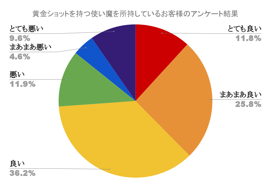 また、アンケート項目にはございませんでしたが、アンケートに回答いただいたお客様のうち、黄金ショットを持つ使い魔を所持しているお客様に絞った場合の結果も公開いたします。