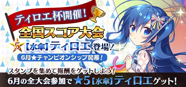 全ての6月の全国スコア大会で指定のスコアを達成すると「魔法乙女のガチャチケット×最大320」をプレゼント!
