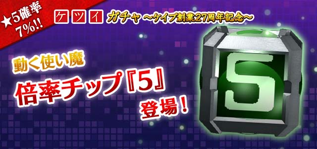 『ケツイ ~絆地獄たち~』より、倍率チップ『5』が動く使い魔となって、「ケツイガチャ~ケイブ創業27周年記念~」に登場!