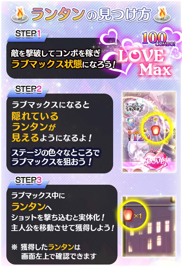 ④ランタン集め達成とミッション達成でラブマックススキル持ちの【天灯】エウリカを獲得しよう!