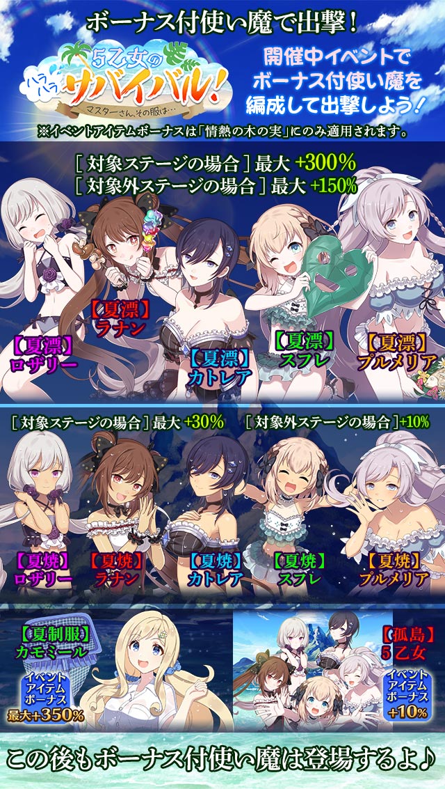 夏の大型イベント第1弾「5乙女のハラハラサバイバル!~マスターさん、その服は…~」開催!