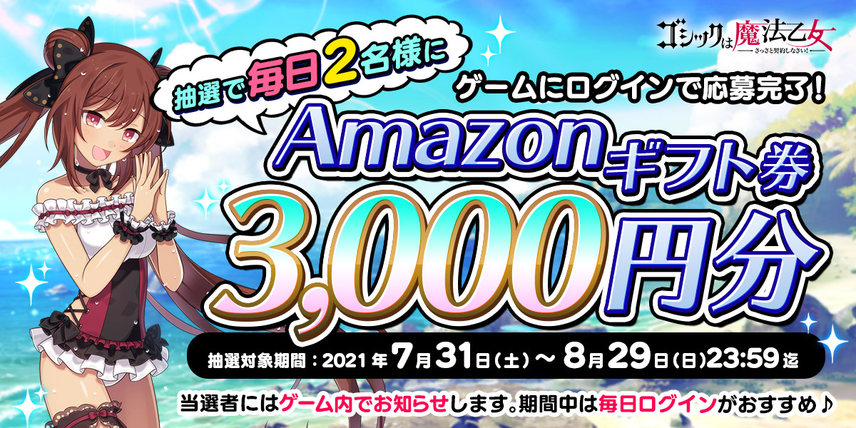 抽選で毎日2名様にAmazonギフト券3000円分をプレゼント!