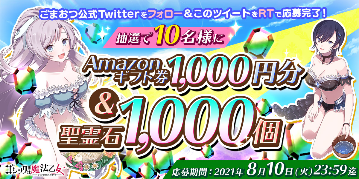 ・応募期間終了後、当社にて厳正なる抽選を行います。ご当選者様には後日、アプリ内メッセージや、ゴシックは魔法乙女(@mahouotome_info)よりダイレクトメッセージでご連絡いたします。