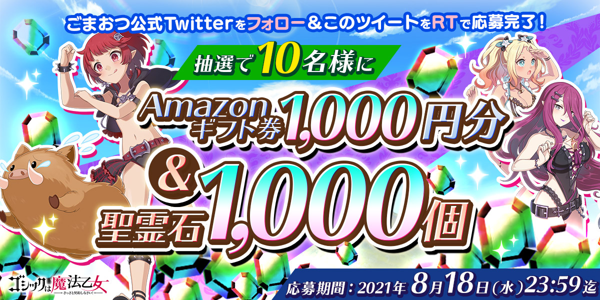 ・応募期間終了後、当社にて厳正なる抽選を行います。ご当選者様には後日、アプリ内メッセージや、ゴシックは魔法乙女(@mahouotome_info)よりダイレクトメッセージでご連絡いたします。