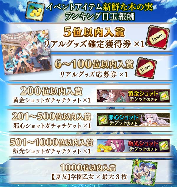 ・イベントアイテム集めランキングにて1位~5位に入賞したお客様は確定で当選となります。
