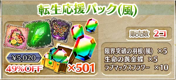 | 転生応援パック(風) | 転生スペシャルパック改 |