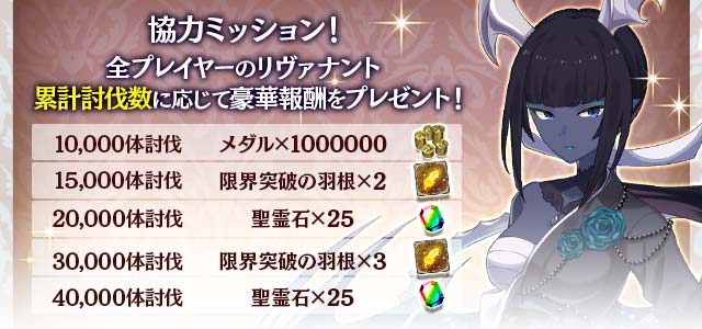 | 30,000体討伐 | 限界突破の羽根×3 |