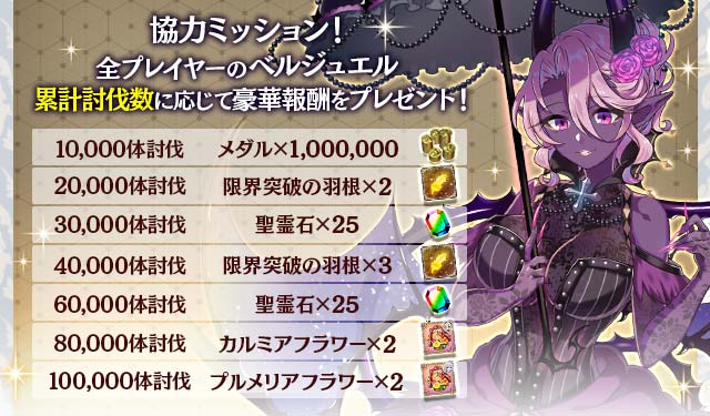 | 40,000体討伐 | 限界突破の羽根×3 |