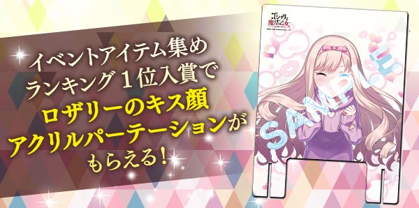 ランキング1位入賞でロザリーのキス顔アクリルパーテーションがもらえる「リアルグッズ確定獲得券」を入手することができます。