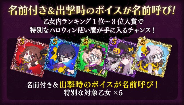 各乙女内ランキング1位~3位入賞で出撃時にプレイヤーの名前を呼ぶ使い魔がもらえる各乙女ごとの「STG(シューティング)名前呼び使い魔券」を入手することができます。