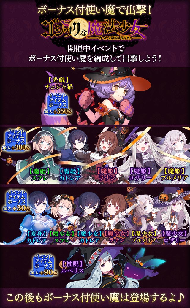 ハロウィンイベント【ゴシックな魔法少女~さっさと契約するにゃ!~】ボーナス付使い魔一覧