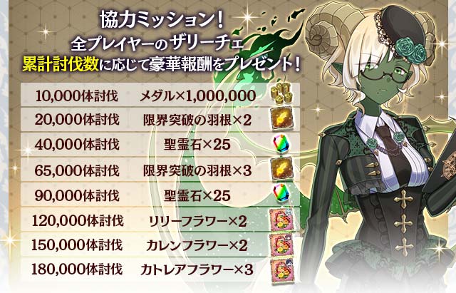 | 65,000体討伐 | 限界突破の羽根×3 |