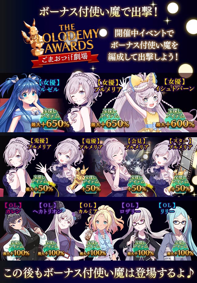 イベント【ごまおつif劇場:THE LOLODEMY AWARDS】ボーナス付使い魔一覧
