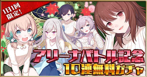 【11/14(日)より1日1回10連無料ガチャが登場!】アリーナバトル開催記念キャンペーン