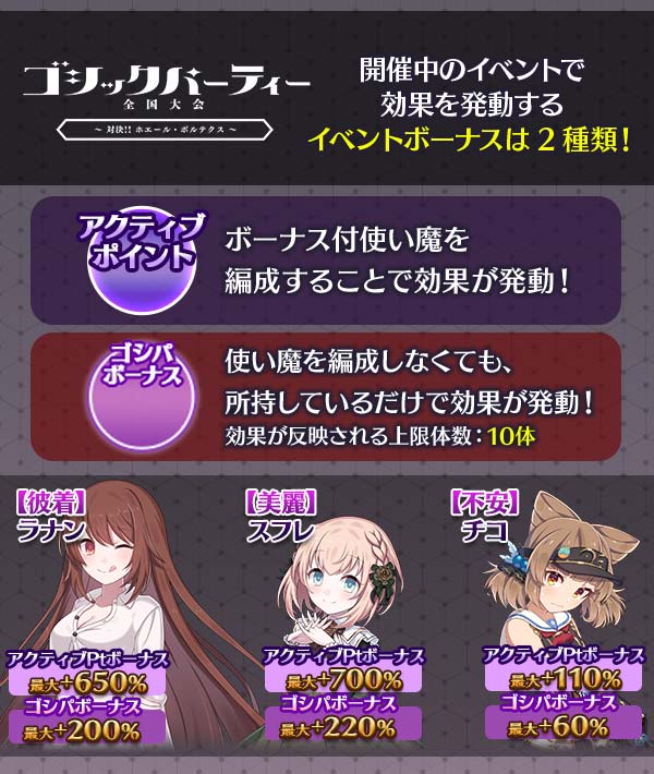 イベント【ゴシックパーティー全国大会~対決!!ホエール・ボルテクス~】ボーナス付使い魔一覧