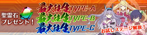 「最大往生TYPE-A」「最大往生TYPE-B」「最大往生TYPE-C」をお試しできるステージが解放!