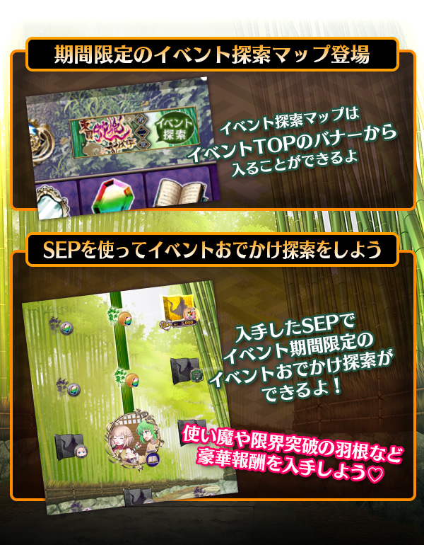 - イベント探索マップの表示期間は2022/3/18(金)メンテナンスまで、SEP獲得可能期間は2022/3/8(火)23:59までとなります。