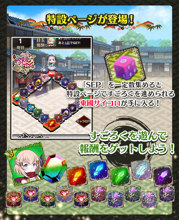 また、一定数「SEP」を集めることで、特設ページですごろくが遊べる「東國サイコロ」が手に入るよ♪