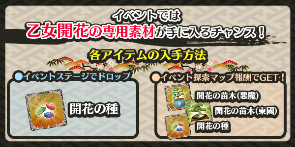 | 開花の苗木(東國) 【東國】シリーズ乙女の開花素材 開花でショットやスキルが変化 | 最大2個 |