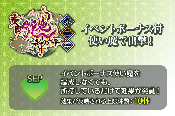 - ボーナス効果が有効なクエストでは、出撃前の使い魔編成確認時にボーナス付使い魔にボーナスアイコンが表示されます。