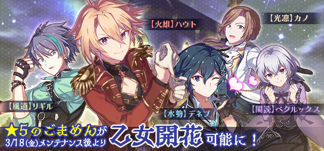 さらに★5のごまめん使い魔は3/18(金)メンテナンス後より乙女開花可能に!