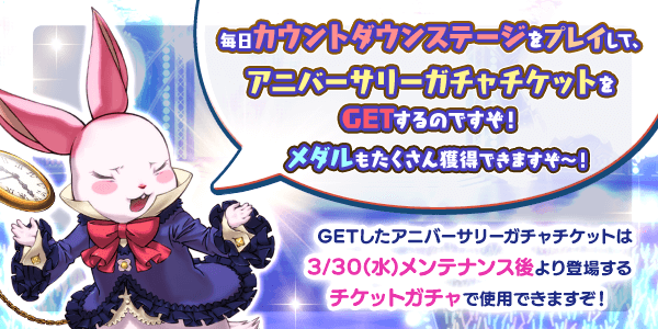 同期間中のログインボーナスで手に入るカウントダウン入場券で挑戦できる!