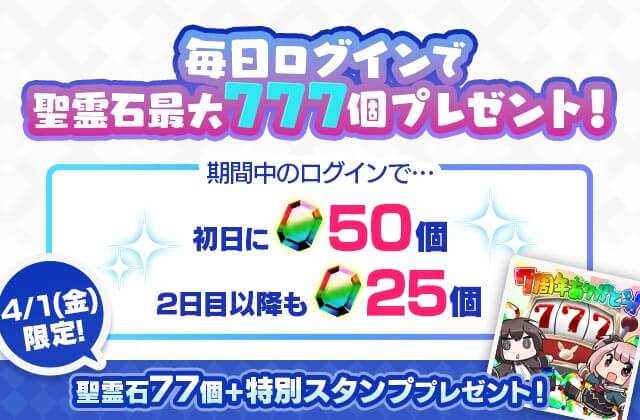 | 4/1 | 77+1連無料ガチャ×最大1回 |