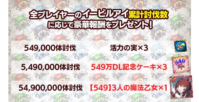 さらに、イービルアイが約549体出現する記念ステージも登場!