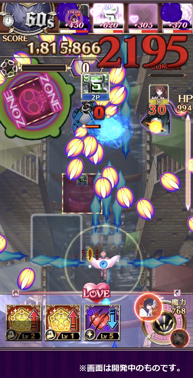 デスマッチでは魔法陣の効果「お邪魔ブロック」の代わりに「ダメージゾーン」が使用できるほか、一部スキルが使用後に時間経過すると再使用できるようになります。