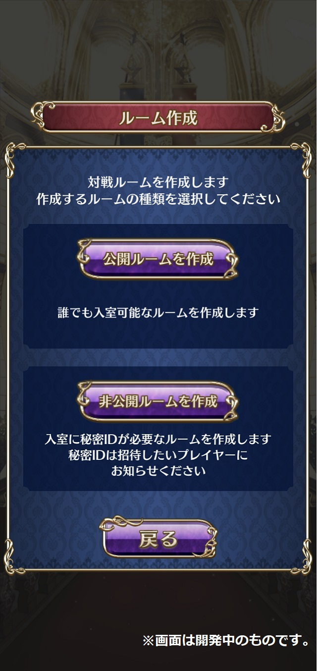 ルームの秘密IDを知っているプレイヤーだけが参加できる対戦ルームを作成します。