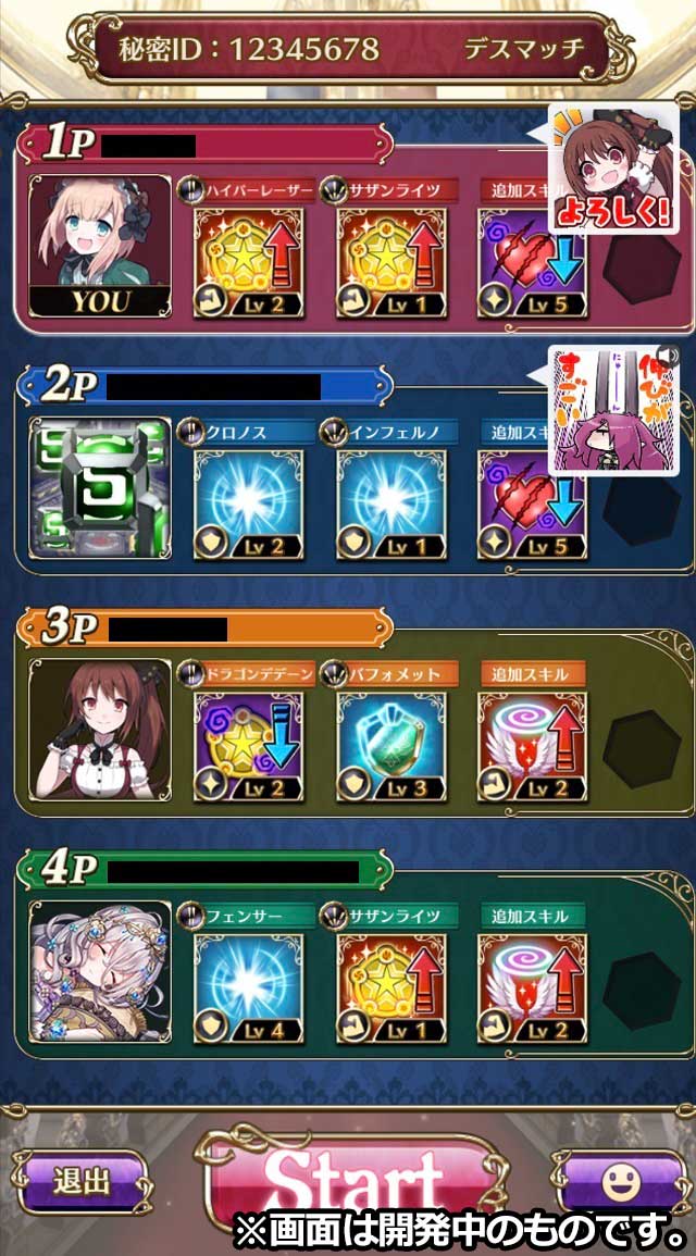 対戦開始前画面、対戦終了画面でスタンプチャットが行えるようになりました。