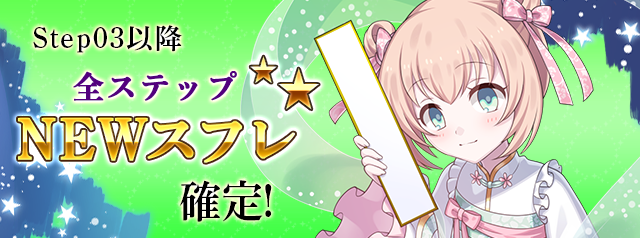 - ステップアップガチャは、Step数によってガチャの提供内容が変化します。 Step数の上昇により必ずしも提供内容がより良い内容に変化することを保証するわけではありません。