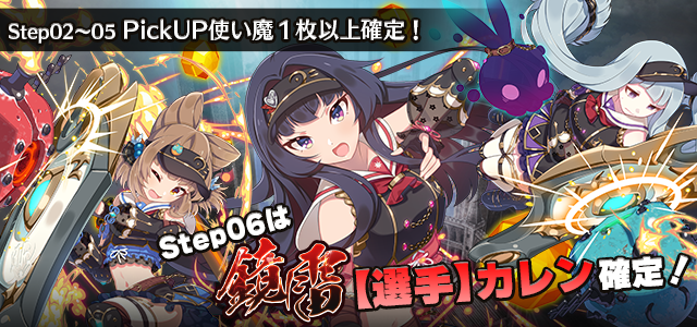 - ステップアップガチャは、Step数によってガチャの提供内容が変化します。 Step数の上昇により必ずしも提供内容がより良い内容に変化することを保証するわけではありません。
