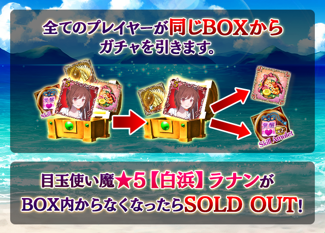 - 【BOX内すべての中身が0】もしくは【BOX内の目玉使い魔の残数が0】になった場合、「SOLD OUT」となり、本シェアBOXガチャを引くことができなくなります。