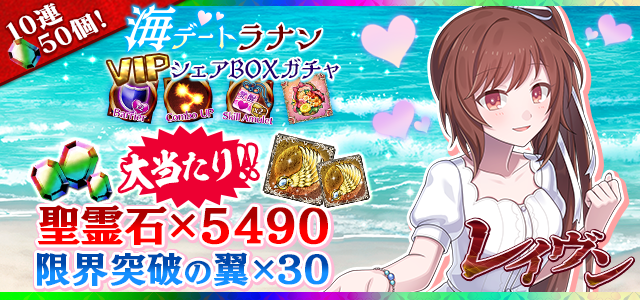 ☆★VIP用★☆【『聖霊石×5490』や『限界突破の翼×30』が当たるチャンス!】海デートラナンVIPシェアBOXガチャ