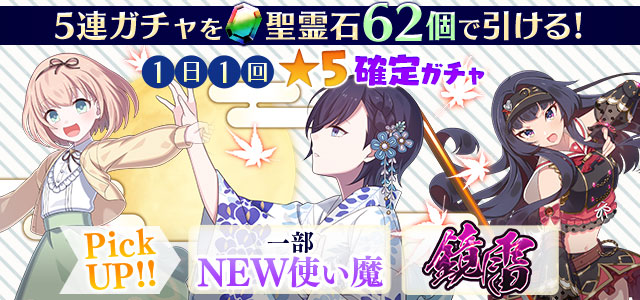 【一部NEW使い魔や鏡雷持ち使い魔などがPickUP】1日1回★5確定ガチャ