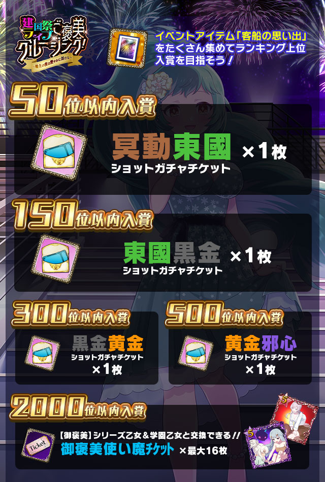 アイテム集めイベント【建国祭ライブご褒美クルージング!~船上の夜は艶やかに深ける~】前半開催!