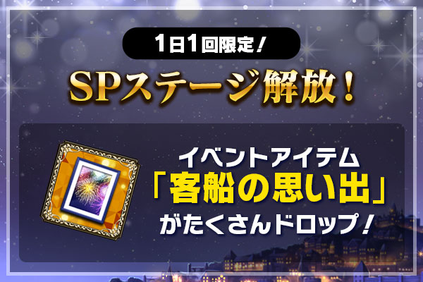 | 終了日時 | 2022/9/19(月) 23:59 | 解放条件 | 客船の思い出を2000個獲得 |