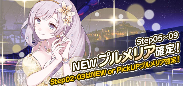 [9/13追記]【Step05~09は『フォルネウス』持ちNEWプルメリア確定!】クルージングプルメリアステップアップガチャ
