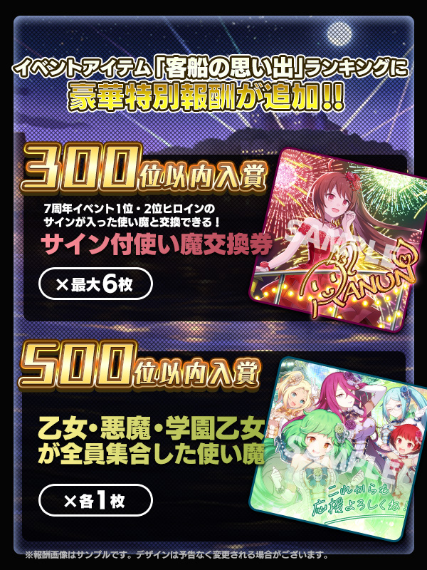 - 客船の思い出(後半)ランキングの報酬配布は9/29(木)メンテナンス後となります。