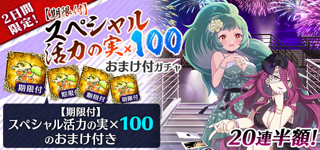 【2日間限定!20連半額!】【期限付】スペシャル活力の実×100おまけ付ガチャ