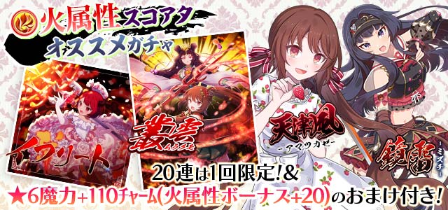 【★6魔力+110チャーム(火属性ボーナス+20)のおまけ付き!】火属性スコアタオススメガチャ