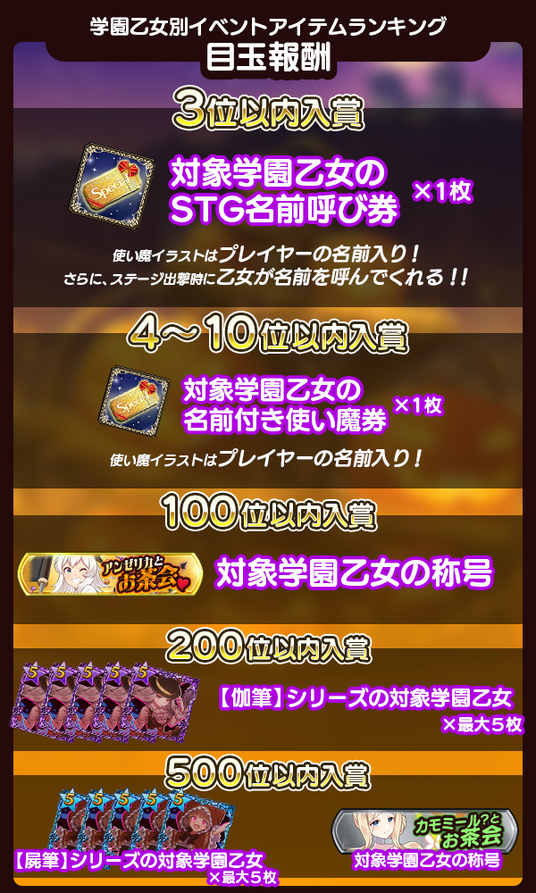 ▼学園乙女別Pt達成報酬でGET!!▼ | ||